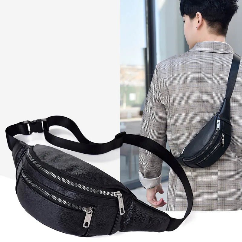 This stylish chest bag is perfect for both men and women. Made of high-quality leather, it is durable and versatile. Whether you're traveling or just running errands, this waist pack is a convenient way to carry your essentials.