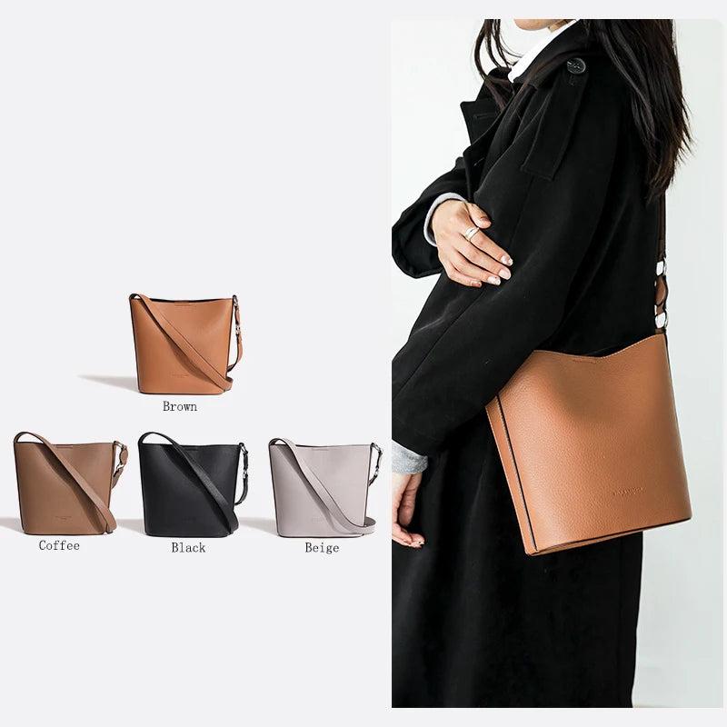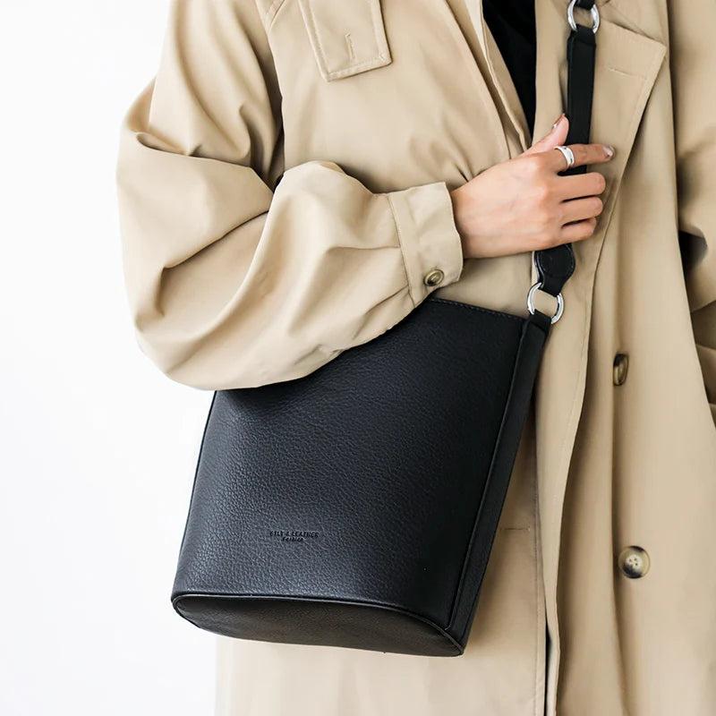 - Versatile leather bucket bag for women