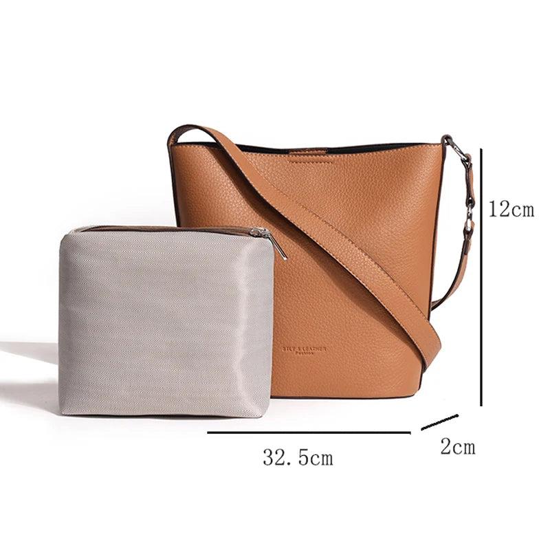 Leather Bucket Bag Women Shoulder Bag Crossbody Purse High Soft Handbag