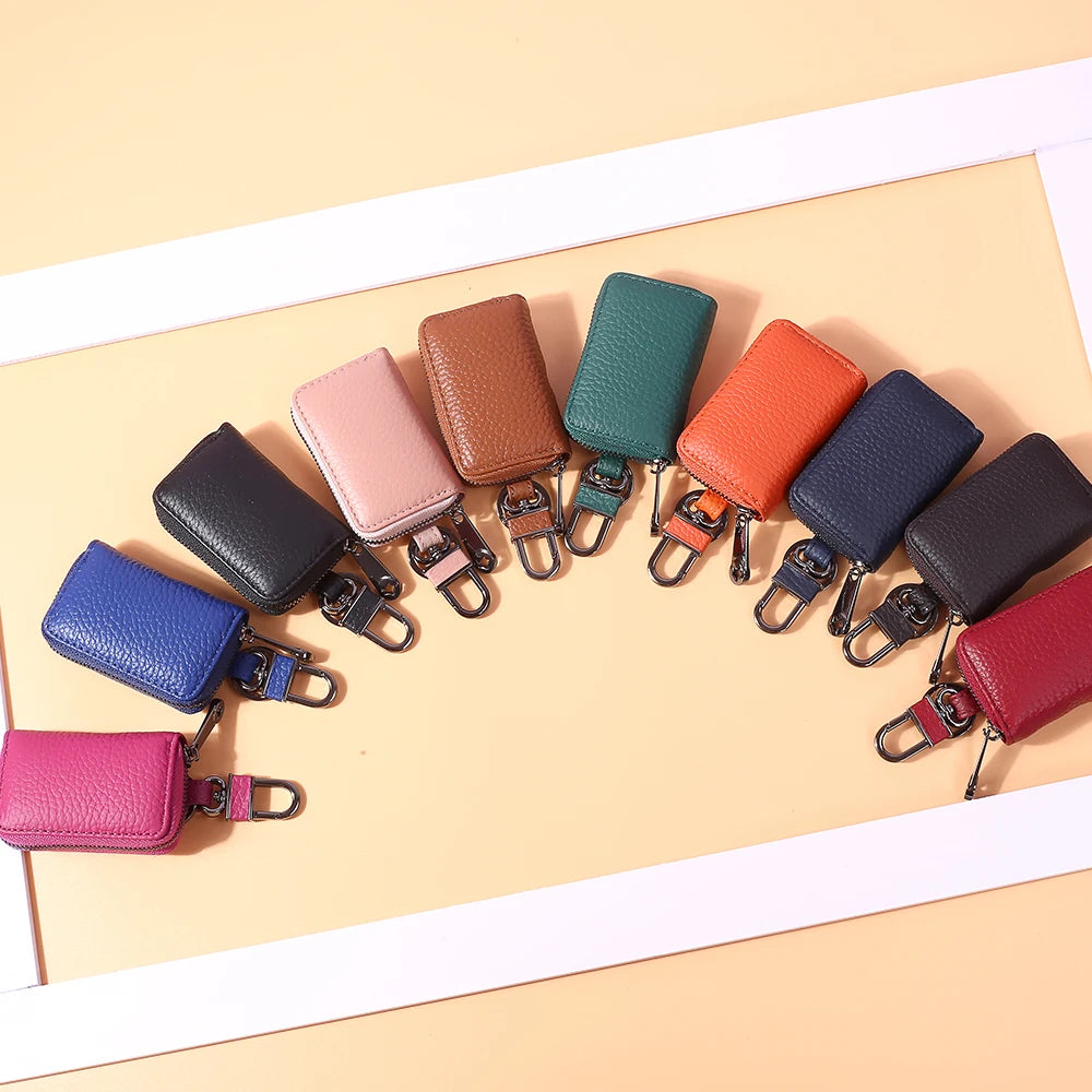 Leather Car Key Holders Men Women Zipper Key Case For Car Gift