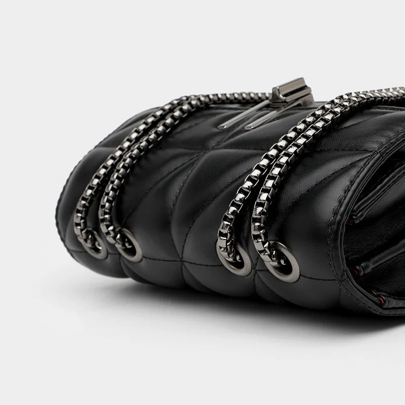 This stylish crossbody bag is made of high-quality leather with a chain strap. Perfect for everyday use or special occasions.
