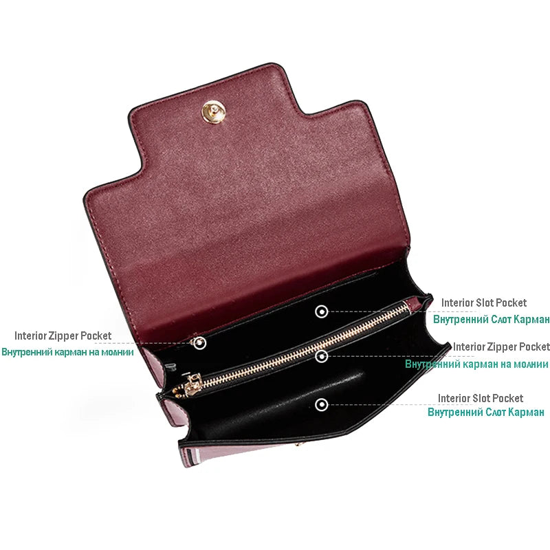 This stylish leather flap bag is perfect for women. It can be used as a shoulder bag or crossbody bag. The high-quality material ensures durability and style.