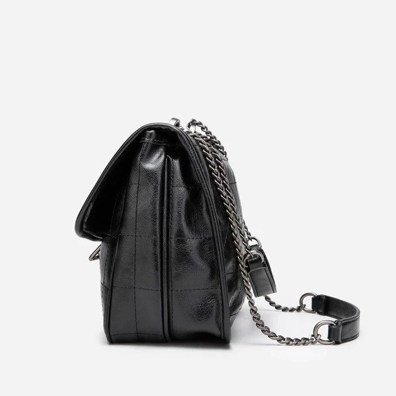 Elegant and stylish leather messenger bag for women, featuring a retro chain design. Perfect as a clutch or shoulder bag. Made from high-quality leather, this bag is a versatile accessory for any occasion.