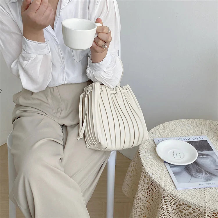 This stylish leather shoulder bag features pleated stripes, perfect for everyday use. It can be worn as a crossbody bag and is ideal for carrying your essentials.