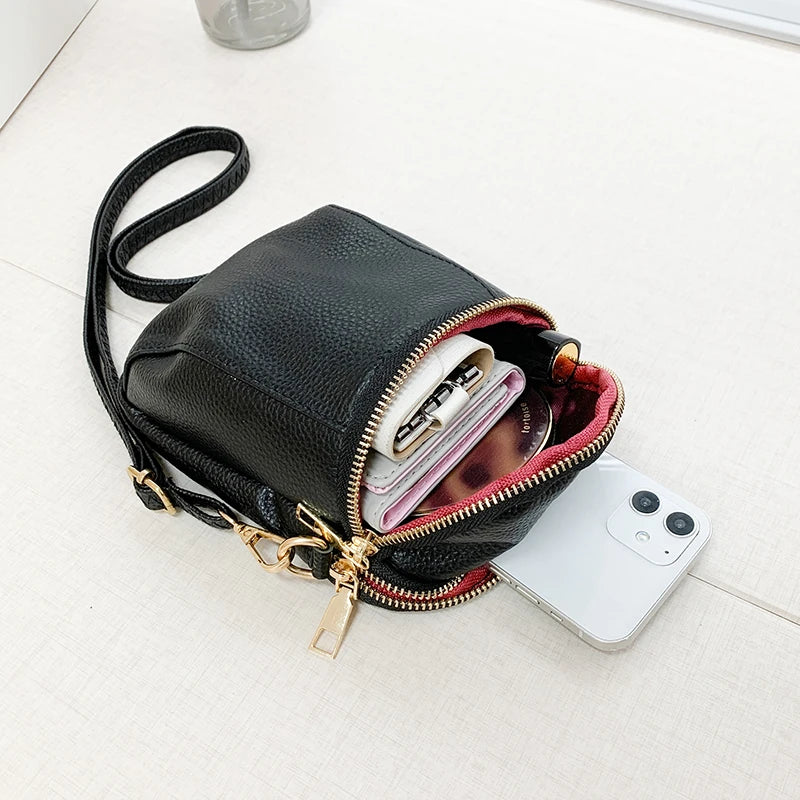 This women's small bag is made of 100% leather and can be used as a shoulder bag, messenger bag, tote bag, or wallet.