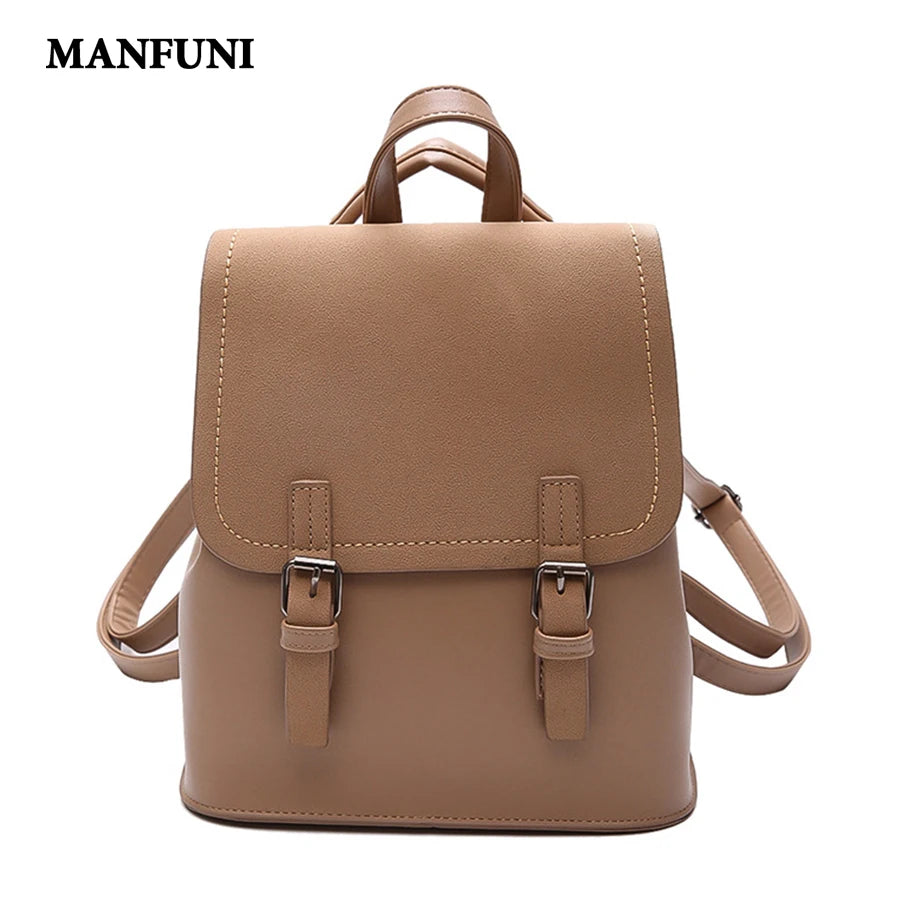 Leather Small Backpack Women Candy Colors Teenage Girl Student Backpack