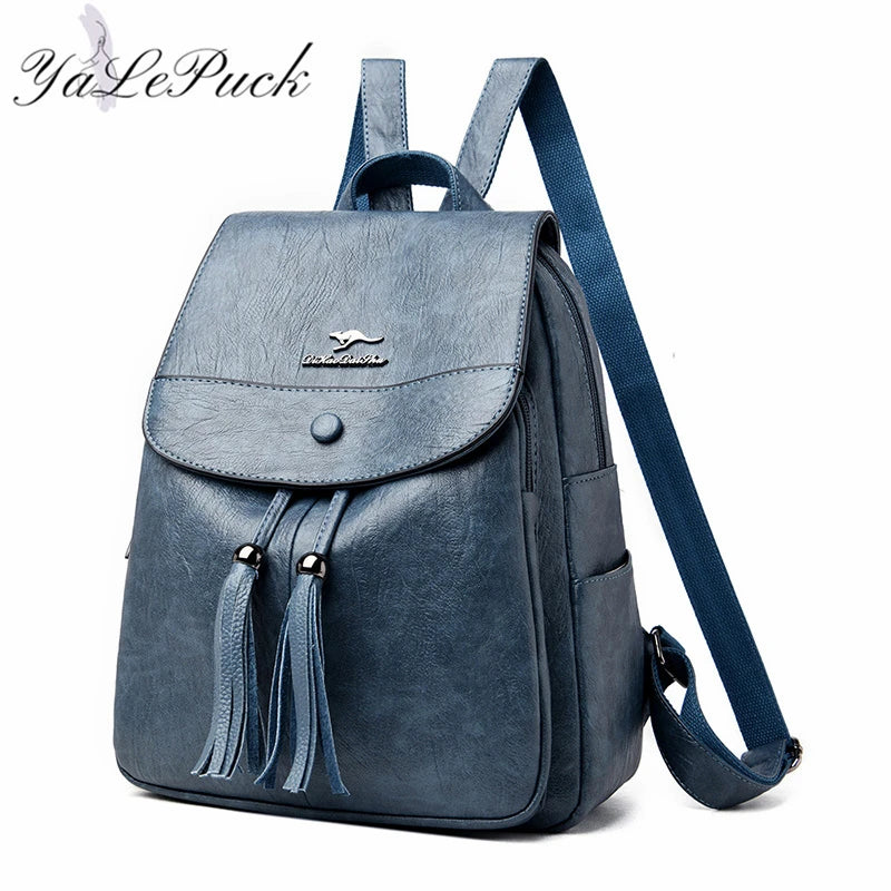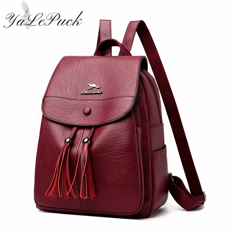 Leather Women Backpack Tassel School Bags Teenage Girls Sac A Dos