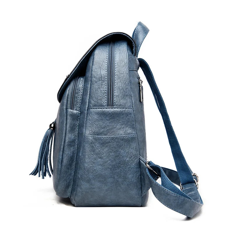 This high-quality leather backpack is perfect for women and teenage girls. It features a trendy tassel design and is ideal for school or everyday use.