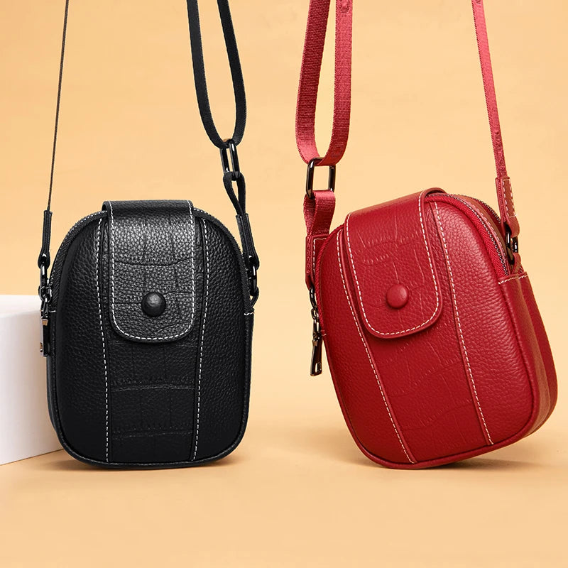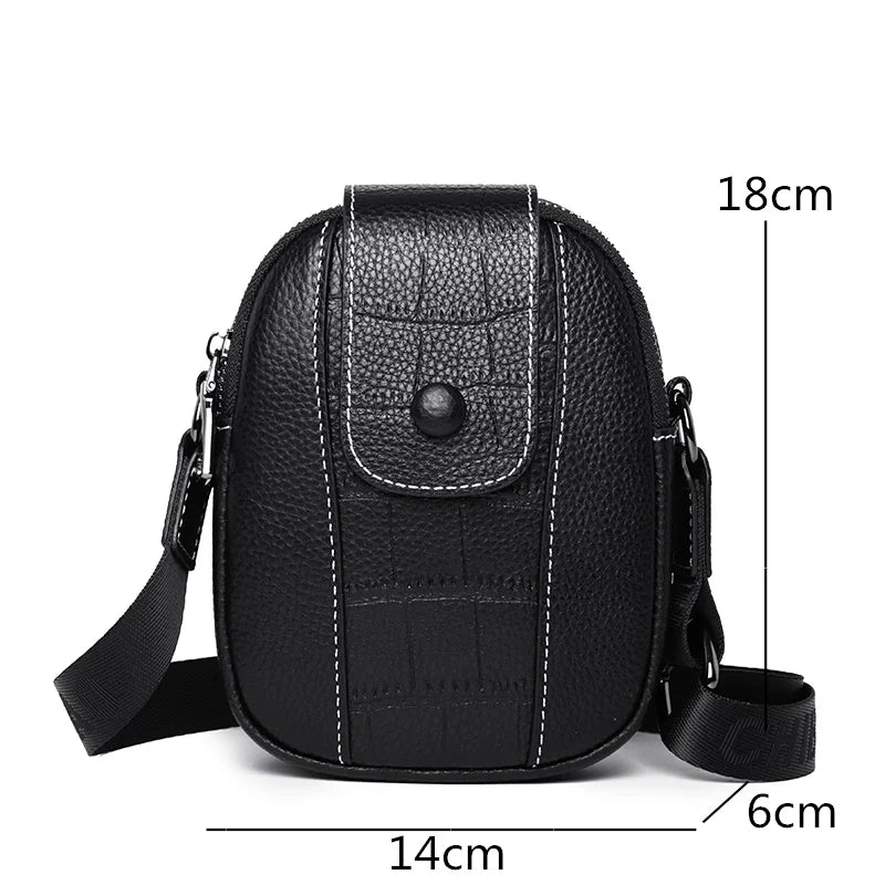This versatile handbag is made of 100% genuine leather, perfect for carrying your phone and essentials. It can be used as a crossbody bag, shoulder bag, or wrist purse.