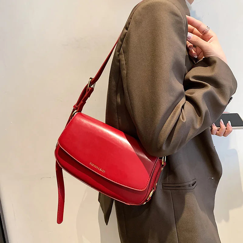 Leather Women Messenger Crossbody Bag Flap