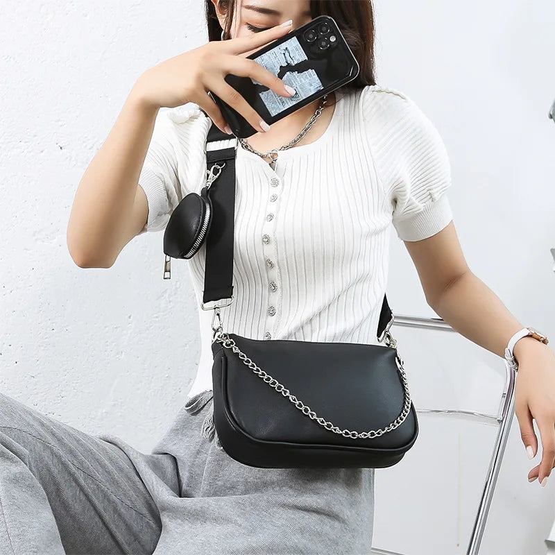 Leather Women Shoulder Bag Purse Chain Handbag Crossbody Bag Set