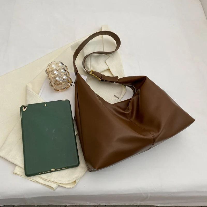 Stay stylish and practical with this solid leather shoulder bag, perfect for daily shopping and casual outings.