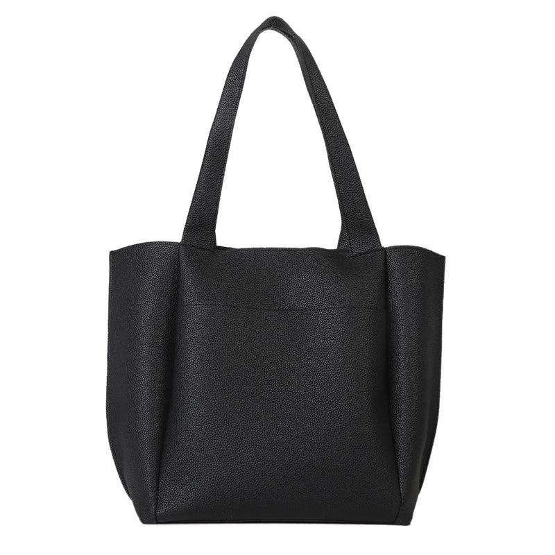 This leather tote bag is designed for women who need ample space to carry their essentials. It features a solid color and a comfortable shoulder strap.