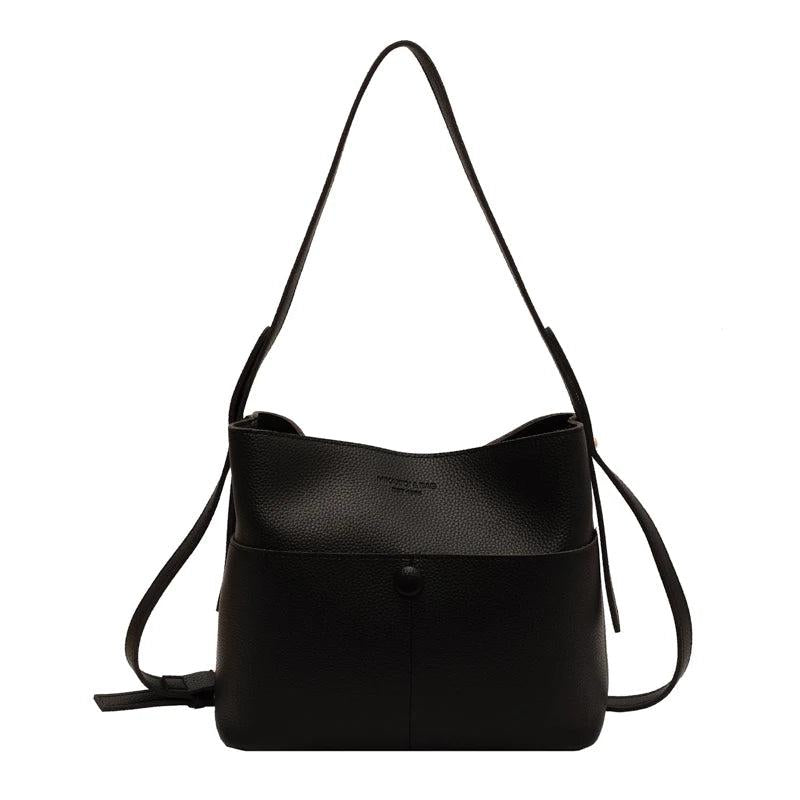 Add a touch of vintage charm to your outfit with this leather handbag. The small bucket design offers convenience and style.