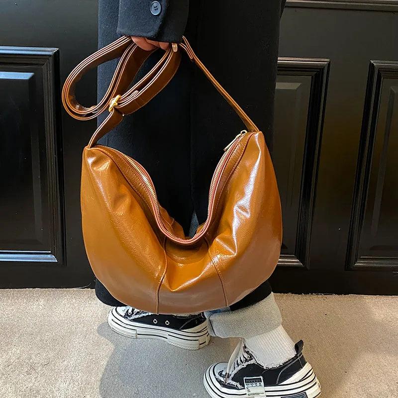 This stylish and spacious shoulder bag is crafted from high-quality leather with a unique splicing design. It offers a large capacity perfect for daily use.