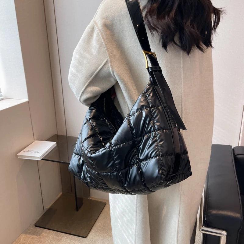 Stay stylish and organized with this high-capacity hobo bag. Made of quality fabric, this shoulder bag is perfect for any winter outfit.