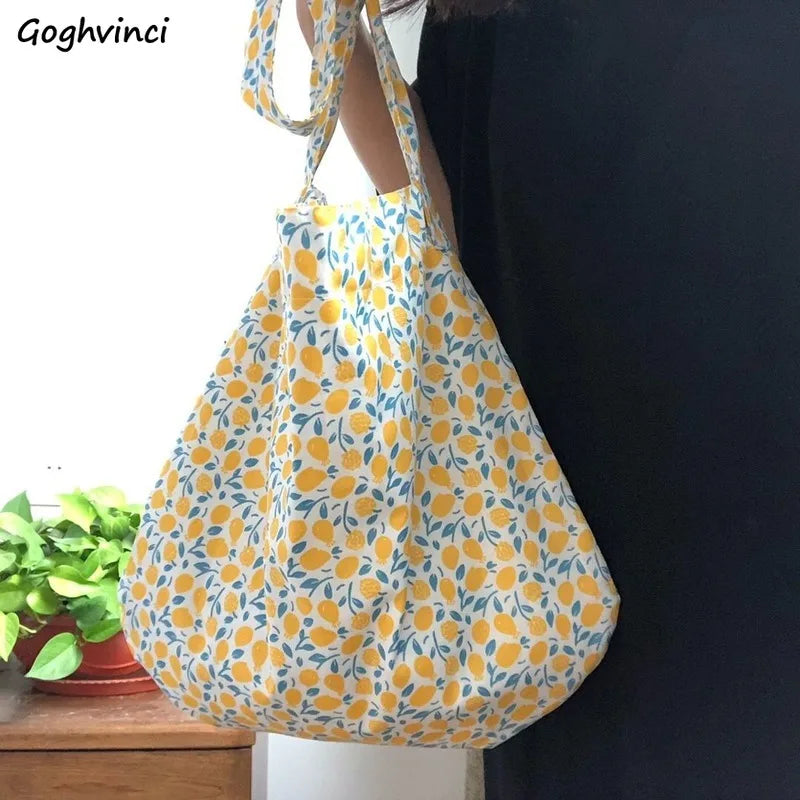Lemon-printed Shoulder Bag Women Cotton Big Capacity Satchel
