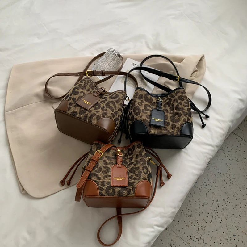 Leopard Crossbody Bag Women Bucket Handbag Multi-function Shoulder Bags