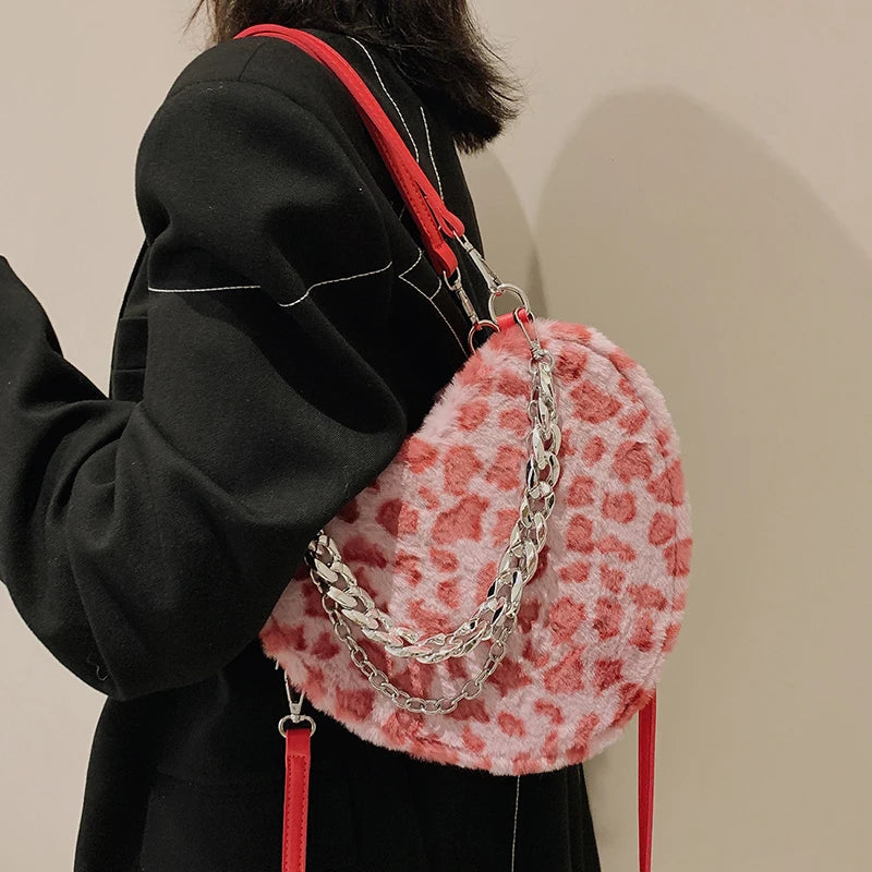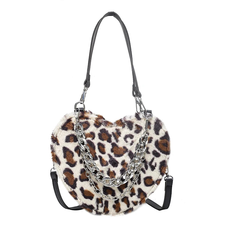 Stay stylish and cozy with this heart-shaped leopard print armpit bag. Made of high-quality plush, this handbag is perfect for winter. Ideal for travel, it can be worn as a shoulder or messenger bag.