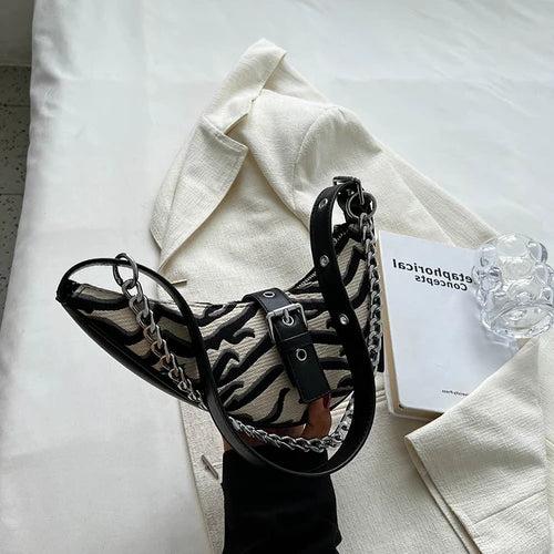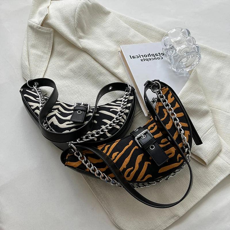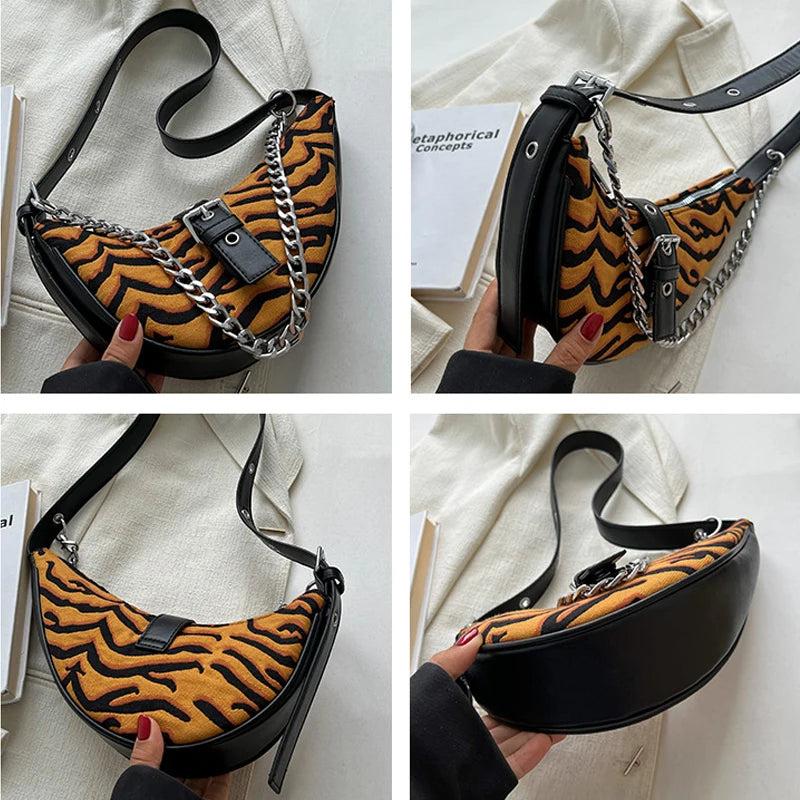 Leopard Print Crescent Bag Winter Retro Chain Armpit Women Handbags