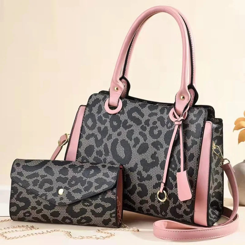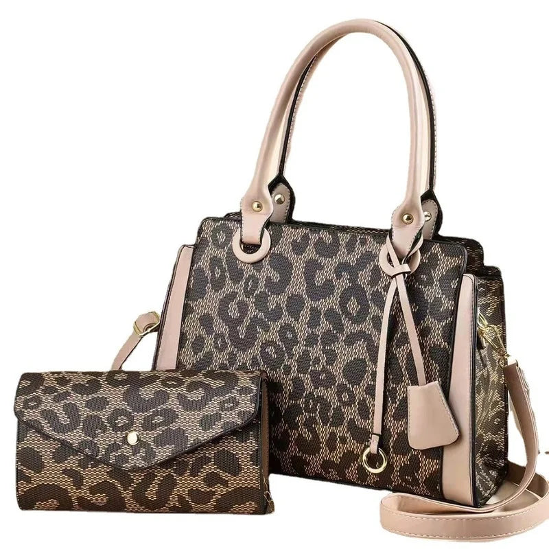 Stay trendy with this hot selling leopard print two-piece handbag. It offers a large capacity and has a stylish one-shoulder design that's perfect for women.