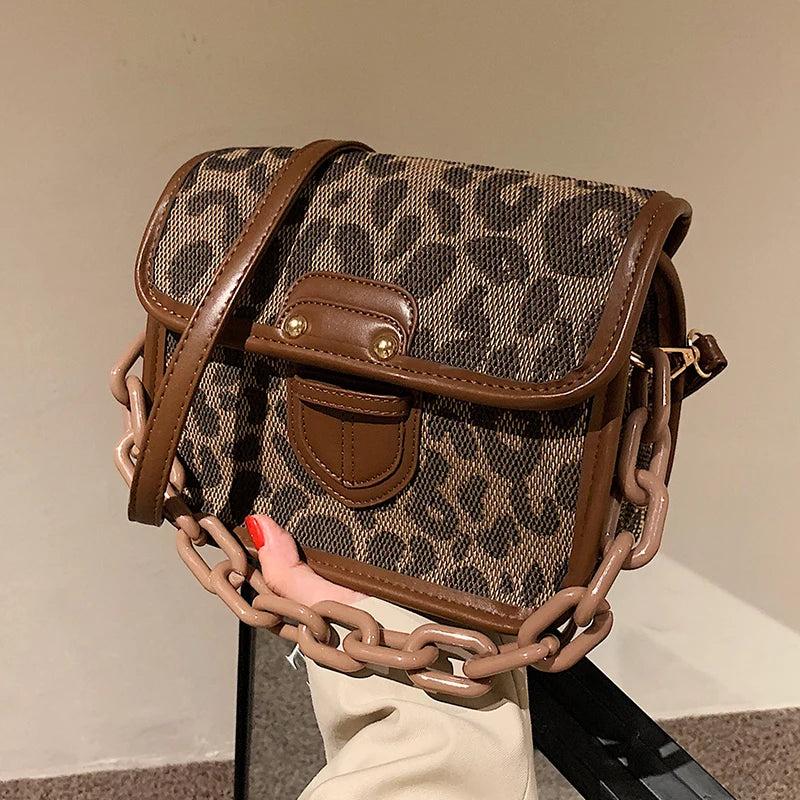 Leopard Shoulder Bag Chain Crossbody for Women Messenger Tote Handbags