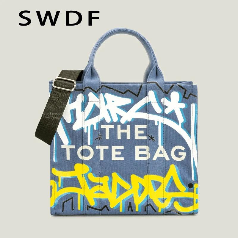 Letter Graffiti Tote Canvas Handbag Shoulder Crossbody Bag