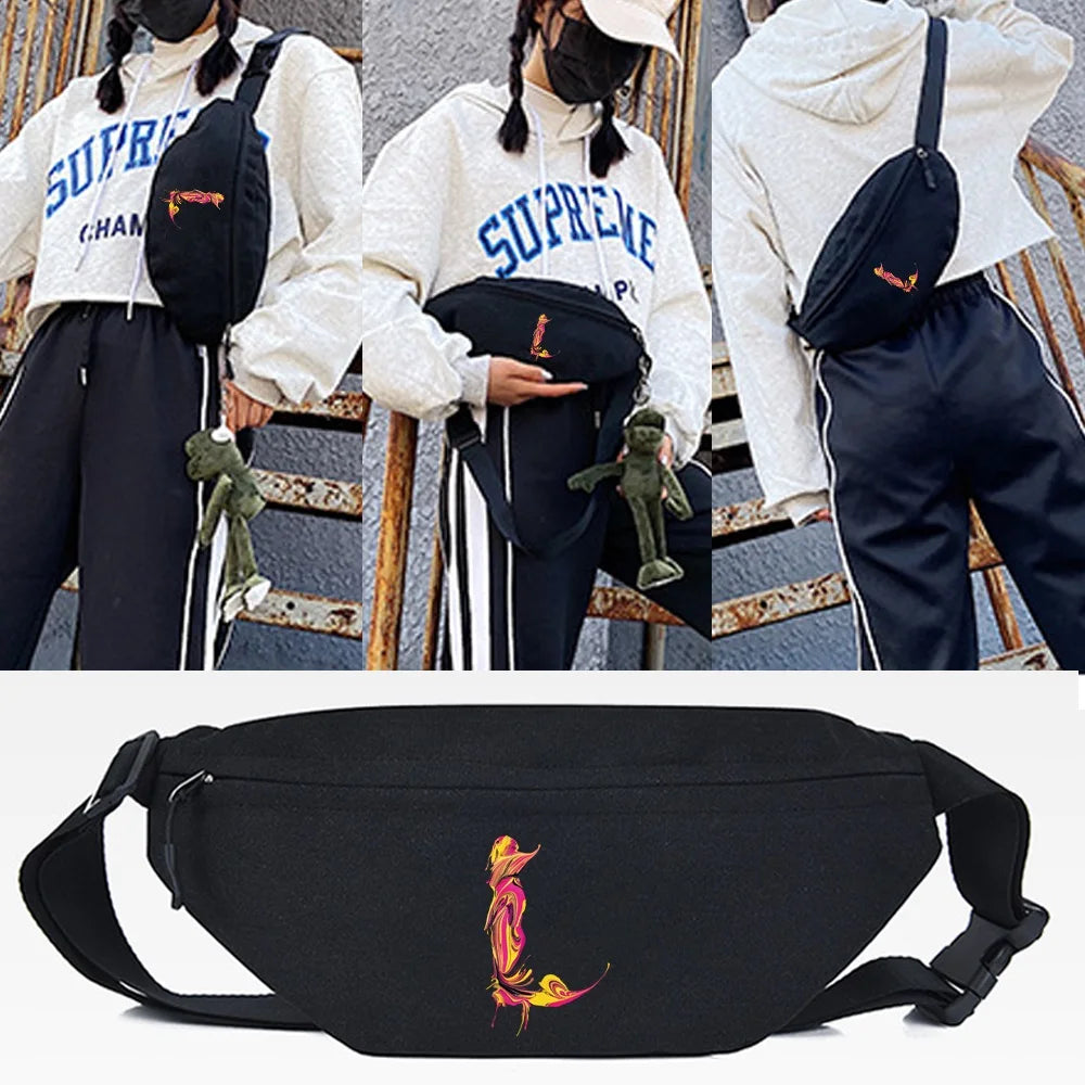 Letter L Print Waist Bag Men Women Chest Packs Canvas Travel Shoulder Bag