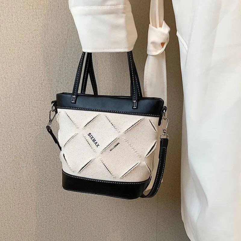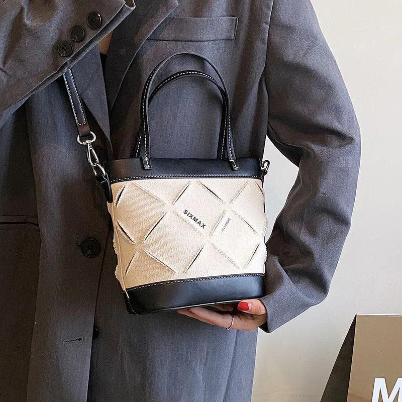 Stay stylish with this chic bucket shoulder messenger bag featuring letters print. Perfect for carrying all your essentials in a fashionable way.