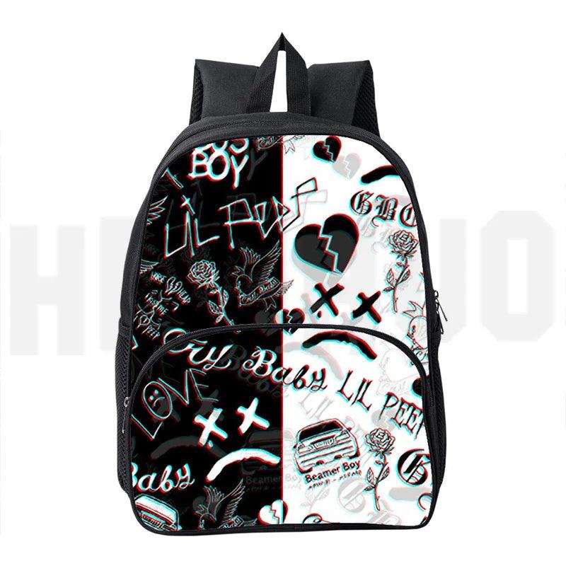 Description:This backpack features a unique Lil Peep 3D printed design, perfect for students and teenagers. It offers a large capacity for school essentials and travel items.Features: 3D printed Lil Peep design Large capacity for school and travel Ideal for students and teenagers Durable construction for daily use Adjustable straps for...