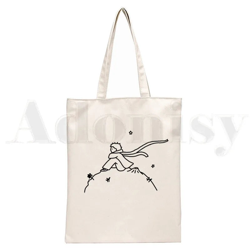 This canvas handbag features a retro design with a beautiful Little Prince art. It's perfect for casual outings and shopping.