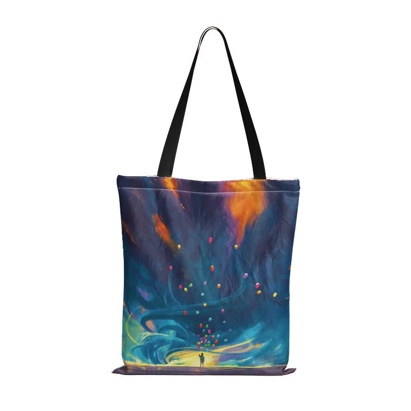 This canvas shopper bag features a charming Little Prince design, perfect for carrying books, keys, and phones. It's eco-friendly and foldable for easy storage.