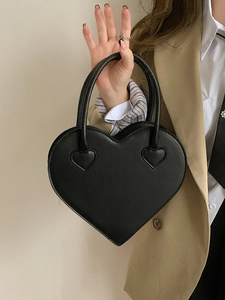 This stylish handbag features a love heart shape design, made from high-quality PU leather. Perfect for daily use, it can be carried as a shoulder bag or crossbody bag.