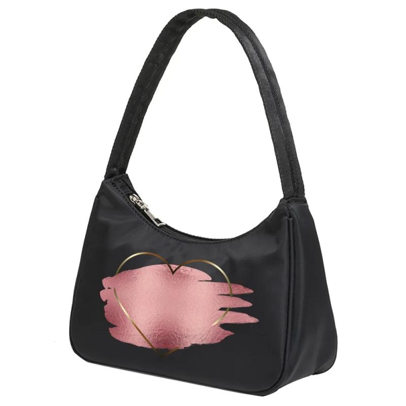 This underarm shoulder bag is made of flax material, perfect for students and outdoor activities. It features a love pattern design, adding a stylish touch to your outfit.