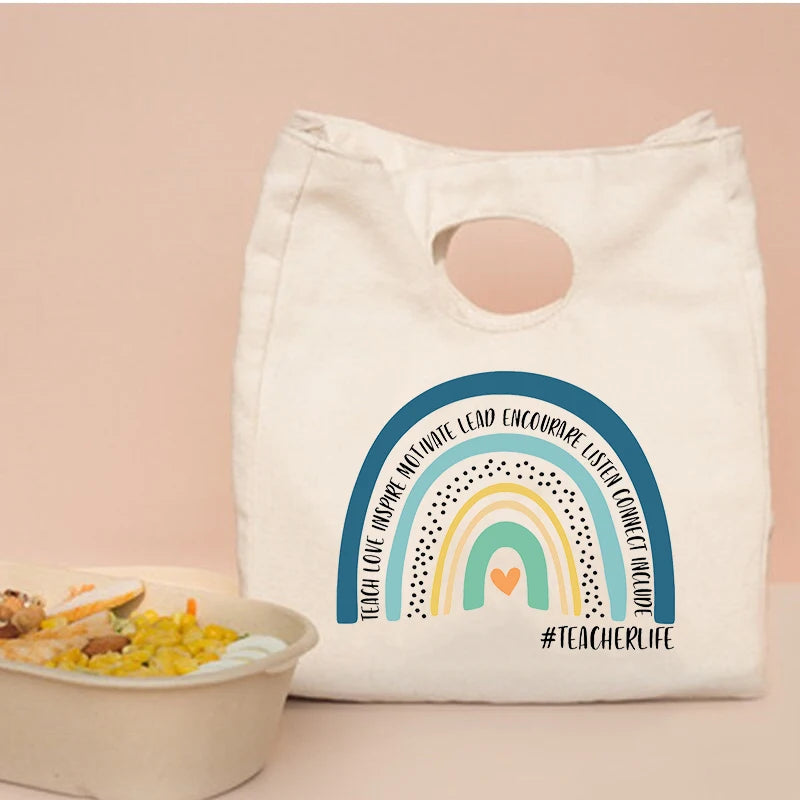 Keep your meals fresh and stylish with this Love Rainbow printed cooler lunch bag. This thermal insulated bag is perfect for women on the go.