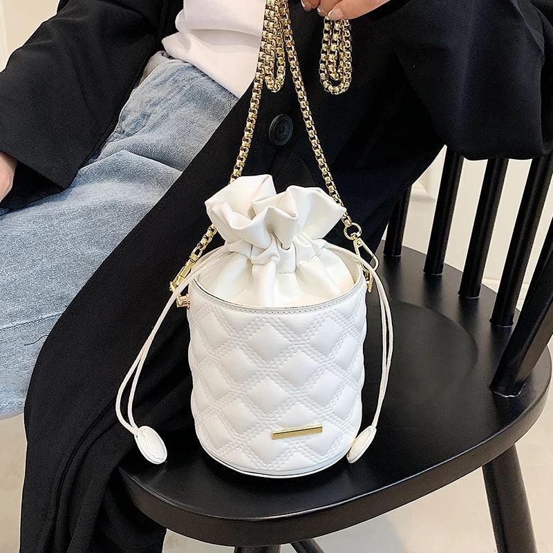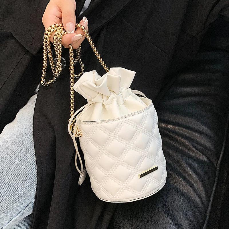 Lozenge Pattern Tote Bucket High-Quality Pu Leather Women's Handbag