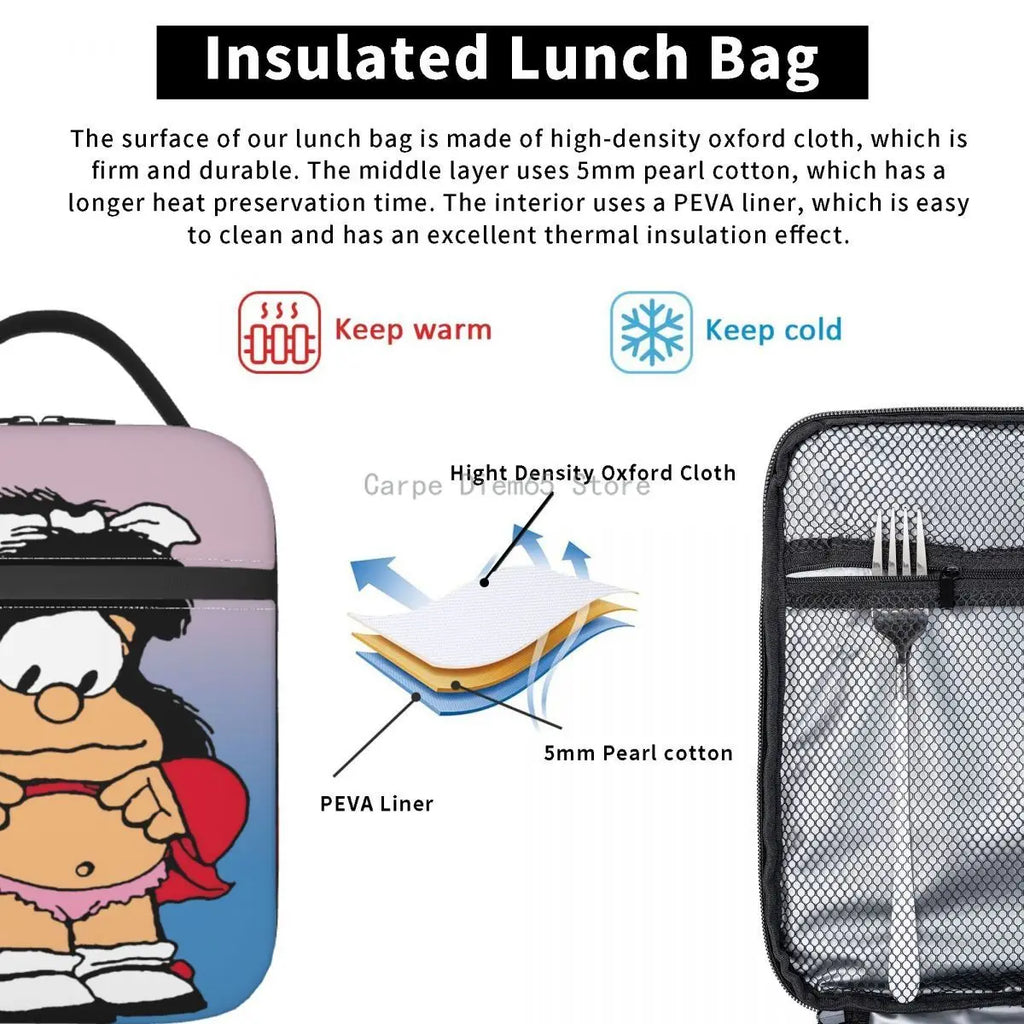 Mafalda Insulated Lunch Bag for Women Quino Comic Cartoon Cooler Thermal
