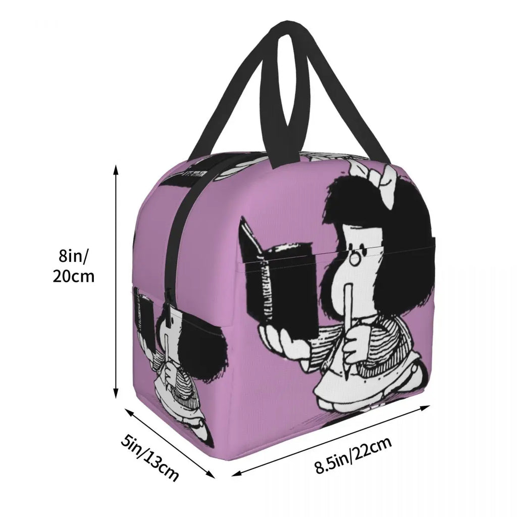 Mafalda Notebook Insulated Lunch Bag Quino Comic Cartoon Reusable Cooler