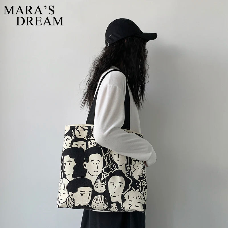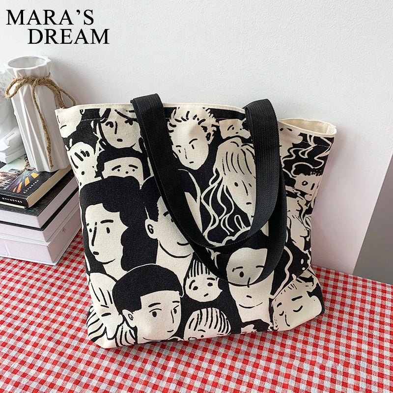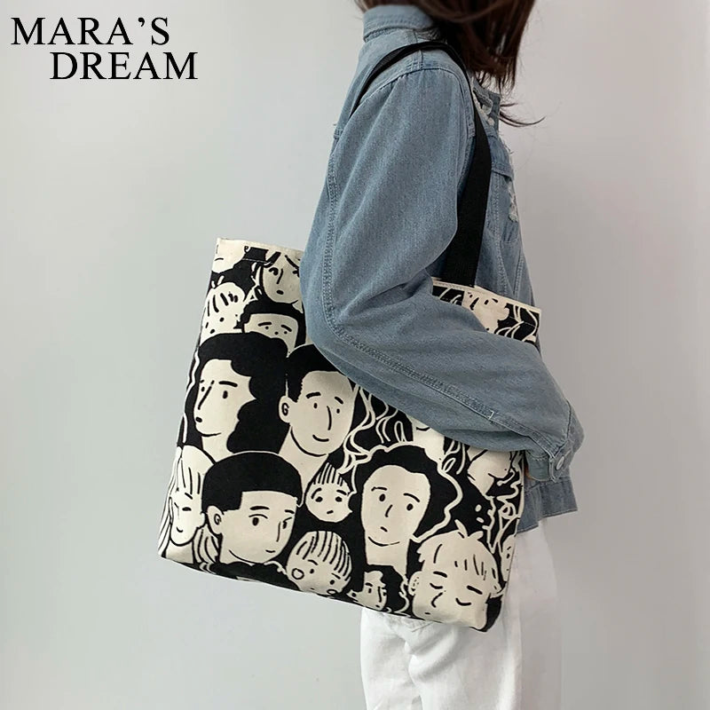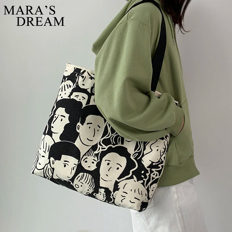 Mara's Dream Cartoon Painting Tote Shopping Bags Large Canvas Shoulder Bags