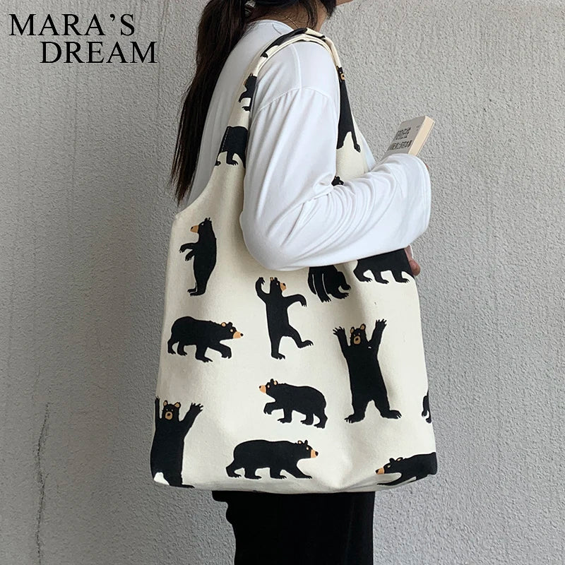 Mara's Dream Korea Ulzzang Big bear pattern Female Shopping Canvas Tote