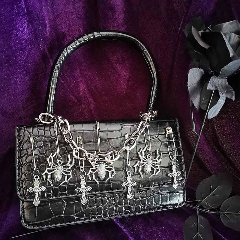 Get into the Halloween spirit with this gothic shoulder bag featuring a metal punk rock design. Perfect for adding a spooky touch to your outfit!