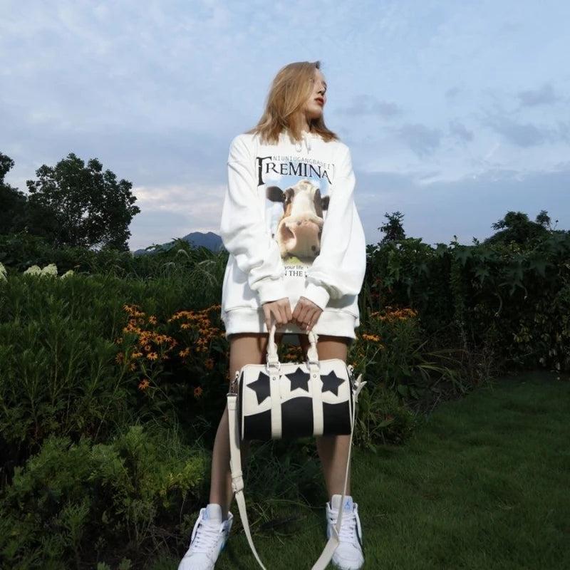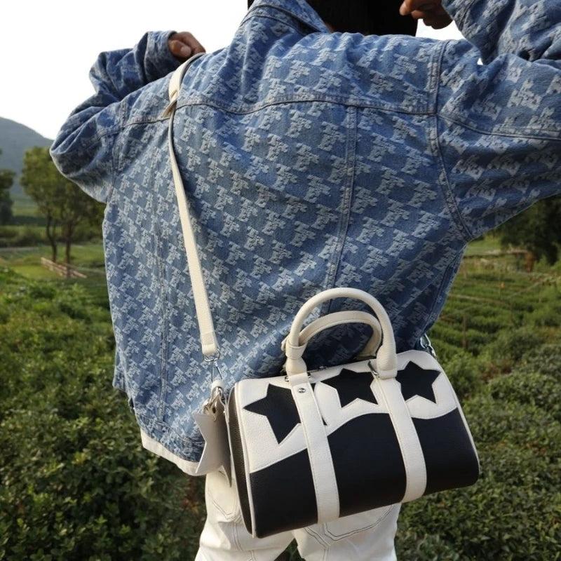 This Boston bag is crafted from durable PU leather, making it perfect for everyday use. Its pentagram design adds a touch of style to your ensemble.