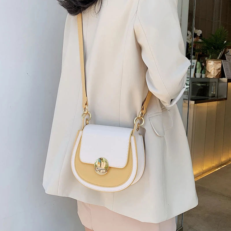 Stay stylish with this circular shoulder bag made of durable PU leather. It's perfect for casual outings and adds a gentle touch to your look.