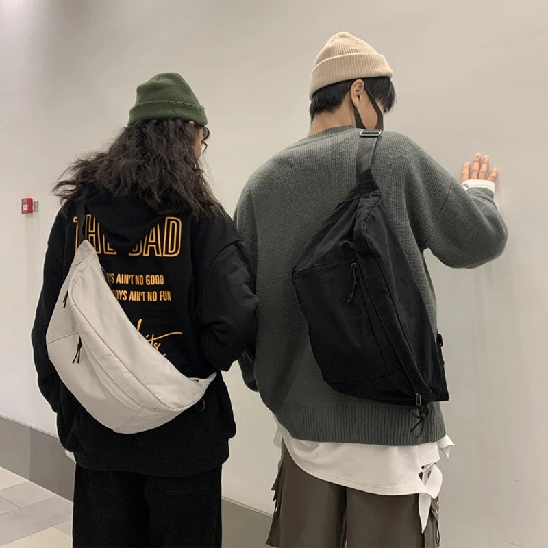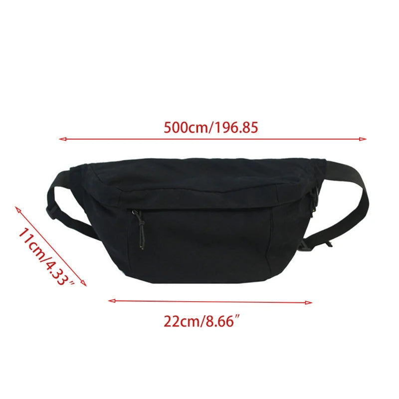 Men Women Large Capacity Canvas Fanny Pack Harajuku Solid Zipper Waist Bag