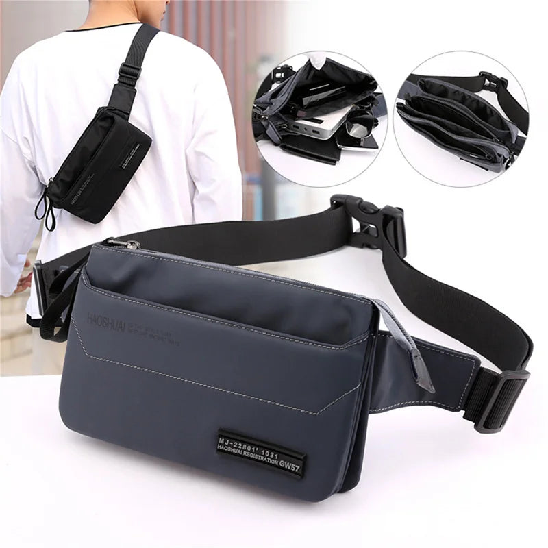 This versatile waist pack is made of durable nylon material and features 4 pockets. It is waterproof, wear resistant, and can be worn as a waist pack or shoulder bag.