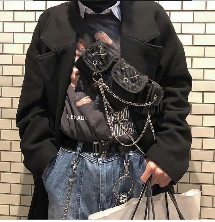 Mesh Tactical Waist Chest Bag with 5 Pockets for Men Women Hip-hop Belt Bag
