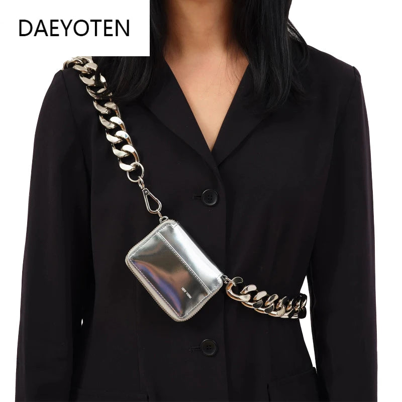 Metal Chain Shoulder Bag Mini Chest Bag Women Motorcycle Bags Coin Purse Ins Hot