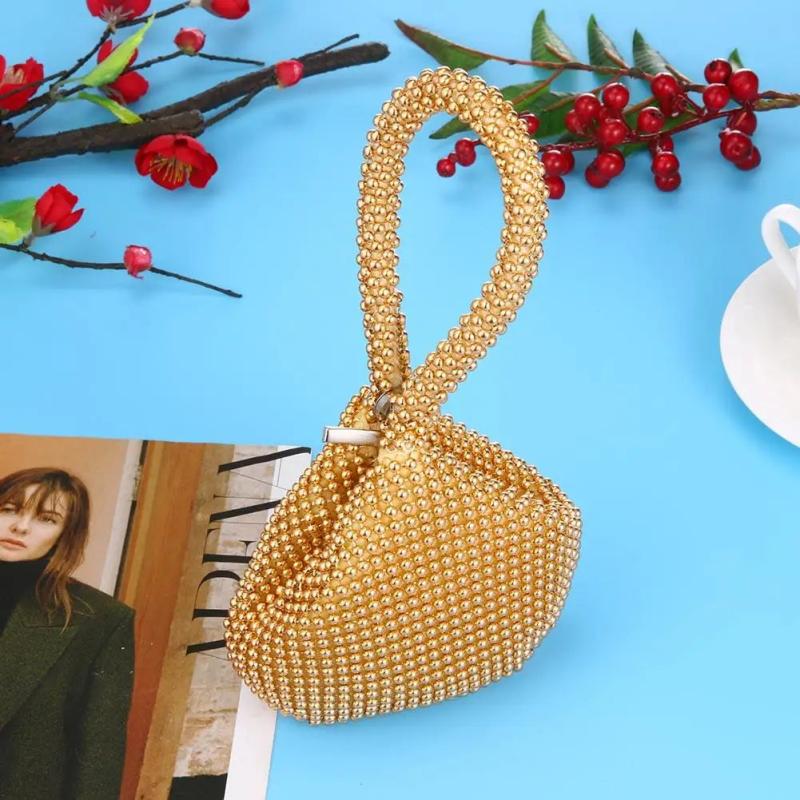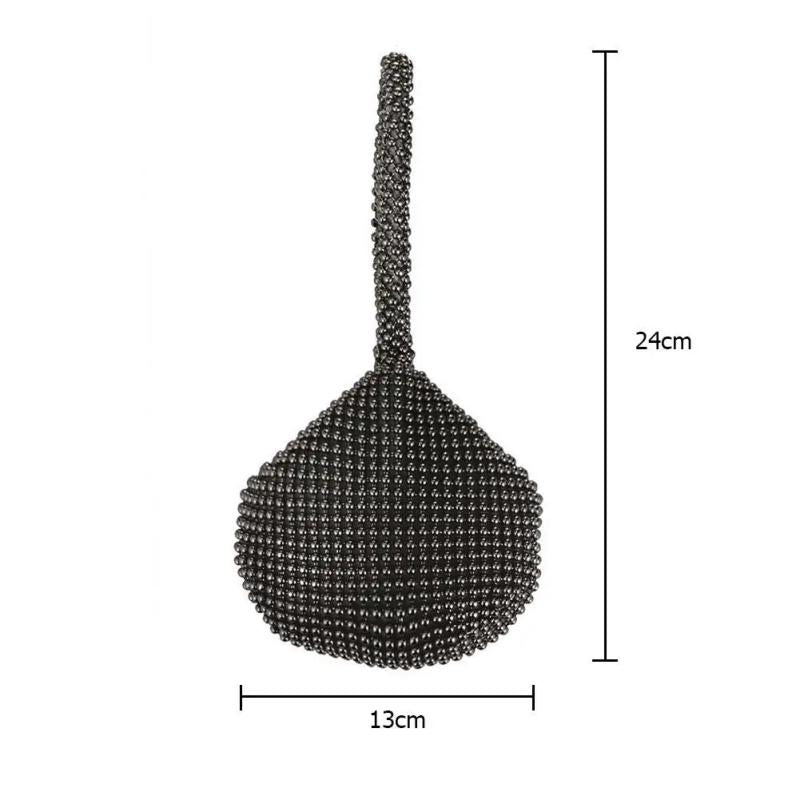 This elegant metal evening clutch bag features diamond rhinestones, perfect for weddings and special occasions.