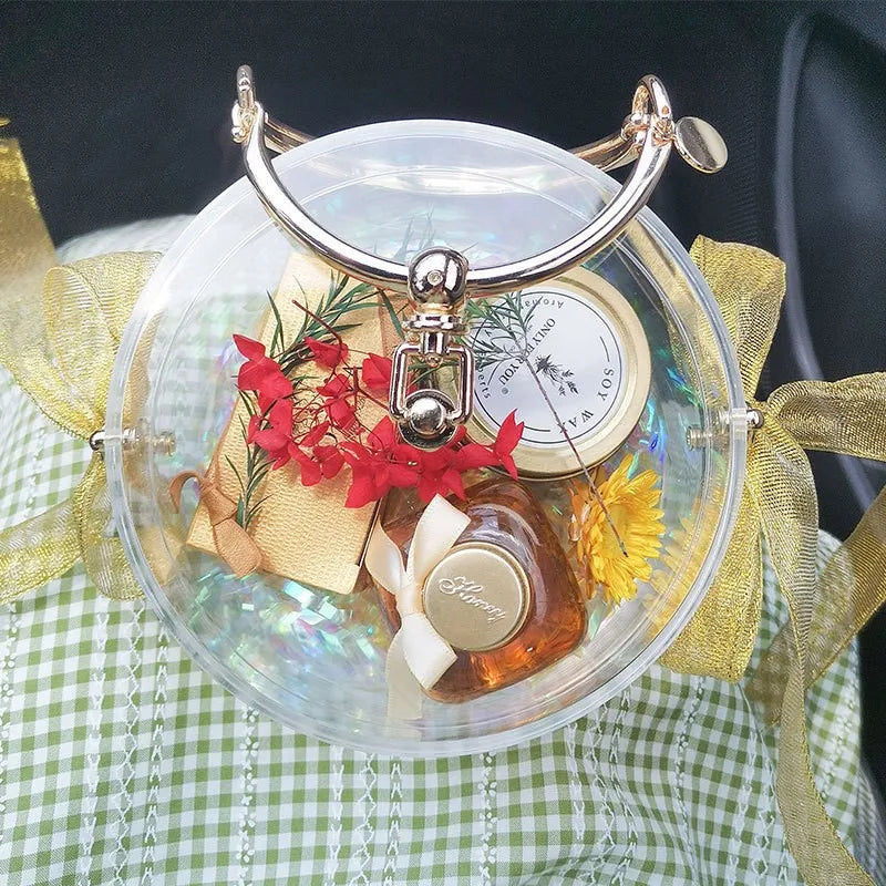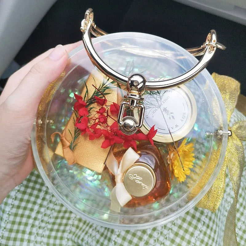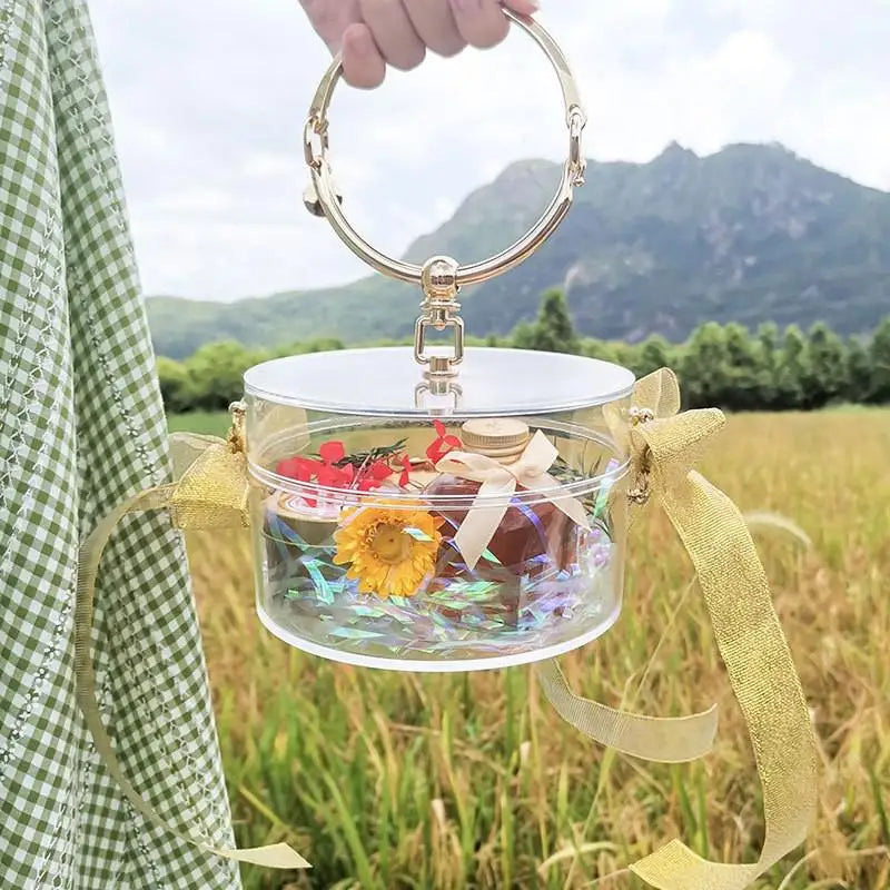 Metal Handle Evening Bags Chains Crossbody Purses Cylinder Box Clutch Bag Women