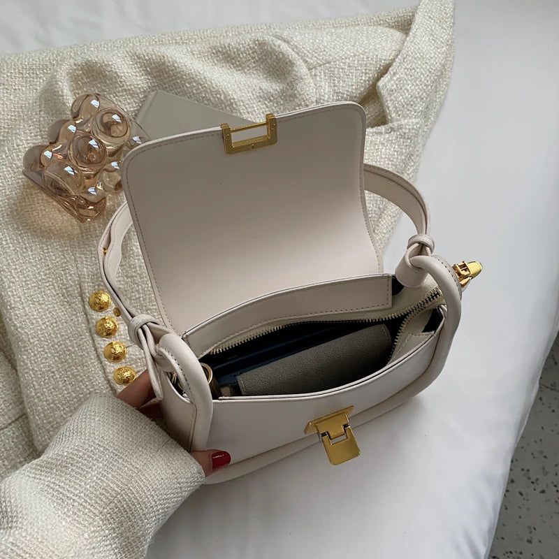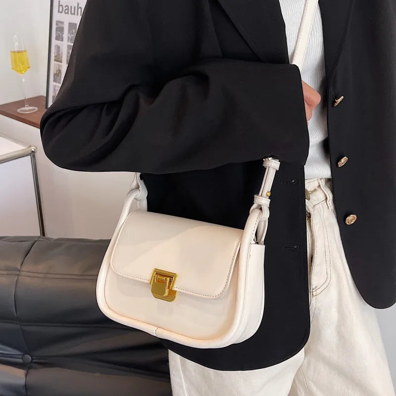 Metal Lock Shoulder Bag Women Leather Crossbody Bag Small Flap Messenger Handbag
